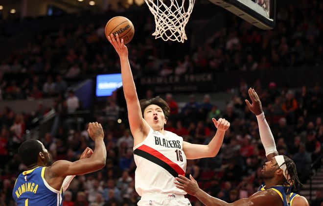 今日再次對陣勇士,楊瀚森繼續(xù)擔(dān)任開拓者替補中鋒,第一節(jié)7分45秒替補登場,楊瀚森登場后參與進(jìn)攻以及為隊友擋拆,錯失空位三分,禁區(qū)自投自搶并且補籃得分,進(jìn)攻端3投1中拿到2分,防守端搶到4個籃板,在場上的表現(xiàn)十分自如。