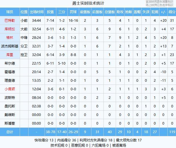點(diǎn)評:14中6的23分1籃板4助攻3搶斷,整個上半場庫里整體狀態(tài)還是不錯,尤其是第二節(jié)連續(xù)得分幫助球隊拉開兩位數(shù)領(lǐng)先,來到下半場成為場上牽制點(diǎn),直到最后時刻命中殺死比賽三分。