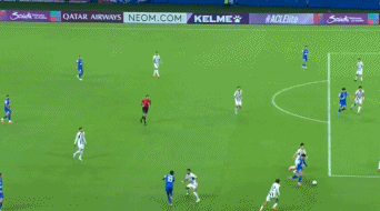 第14分鐘,阿蘇埃禁區(qū)右肋強(qiáng)行突破之后左腳勁射被擋出底線。