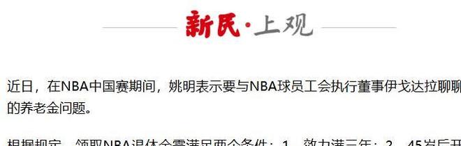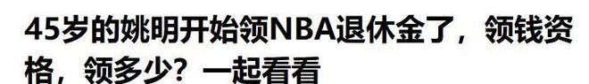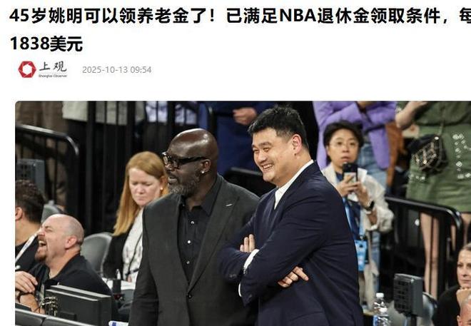 上觀新聞:(45歲姚明可以領(lǐng)養(yǎng)老金了!已滿足NBA退休金領(lǐng)取條件,每月1838美元2025.10.13)