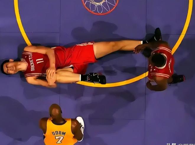 不小心撞擊到了姚明的腿部,劇烈的疼痛瞬間蔓延全身。