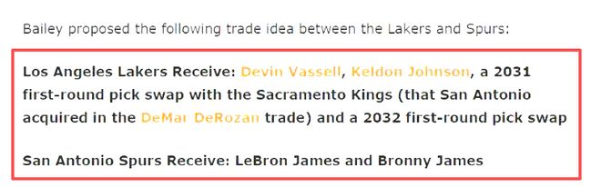而就在近日,知名美媒Bleacher Report在社交媒體上拋出震撼觀點(diǎn):“詹姆斯和文班亞馬這對(duì)組合能直接統(tǒng)治聯(lián)盟?。 辈⒚鞔_表示馬刺應(yīng)該尋求交易詹姆斯,讓這兩位狀元聯(lián)手。這一大膽設(shè)想迅速引爆NBA圈,而文章中提到4換2潛在交易方案包括:馬刺送出瓦塞爾、凱爾登·約翰遜和兩個(gè)首輪簽互換權(quán),從湖人得到詹姆斯和布朗尼。