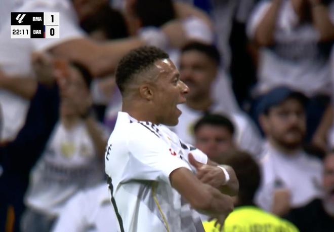 此役主場對陣巴塞羅那,姆巴佩在比賽第22分鐘破門,為皇家馬德里取得1-0領(lǐng)先。