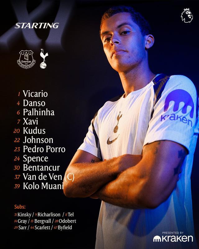 北京時(shí)間10月27日0:30,英超第9輪,埃弗頓主場對(duì)陣熱刺。賽前首發(fā)公布。